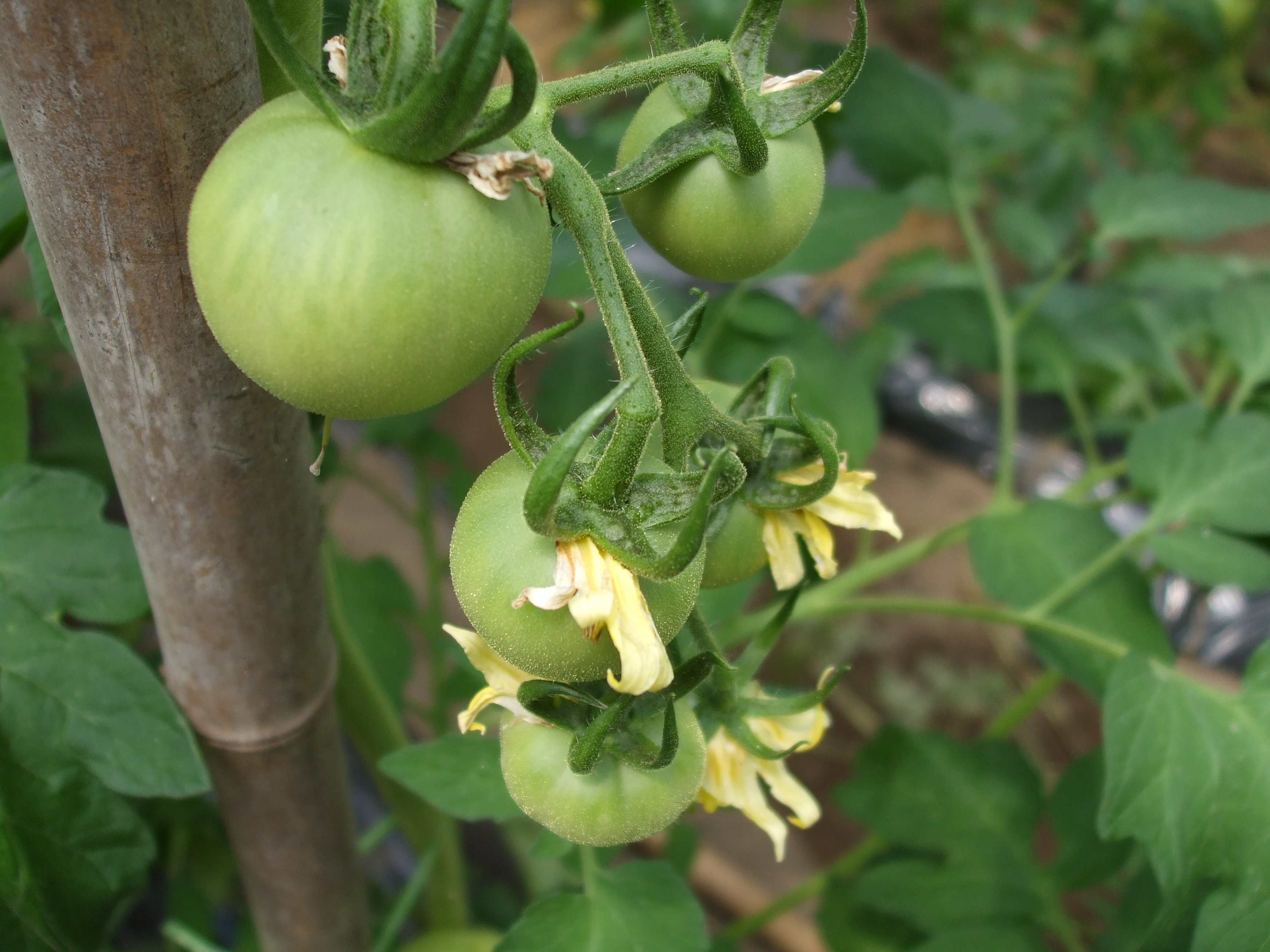 なすやトマトの花を見ていたら気持ちもゆったりほどけてきた。 野菜に、自然に感謝です。